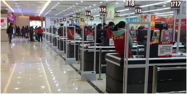 悅購超市的收銀通道式聲磁防盜系統(tǒng),使用博航BH9686MONO單支座聲磁防盜系統(tǒng)。此款聲磁防盜器專為收銀通道式防盜設計,具有安裝簡單、調試方便、性能穩(wěn)定、價格親民等特點。是中高檔超市較為理想的超市防盜系統(tǒng)。